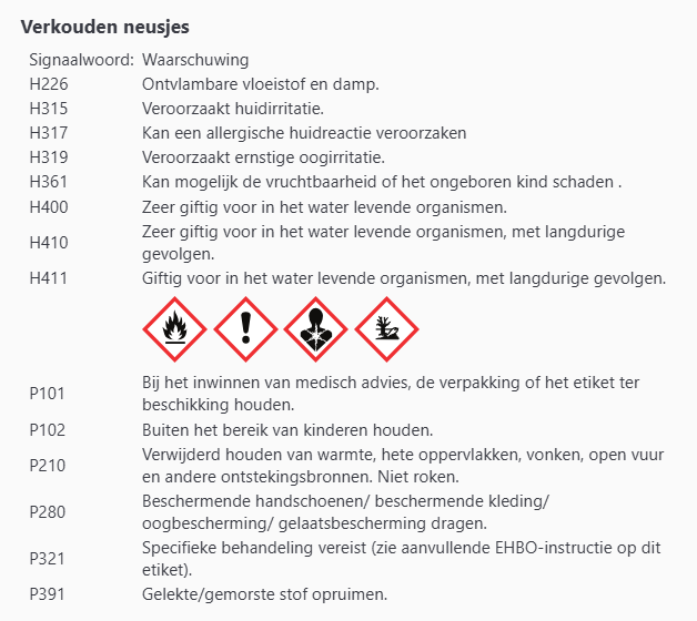 Het is voor ons belangrijk om onderstaande gezondheidswaarschuwingen (conform Europese wetgeving) toe te lichten. Wij willen dat jij de olie veilig en met vertrouwen kan gebruiken.